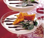 Portakalların suyunu sıkın. Jelatini soğuk suda yumuşatın. Labne peynirini portakal suyu, yoğurt, pudraşekeri ve likörle karıştırın. Jelatini ıslak bir şekilde küçük, sıcak bir tencerede eritin. Labne peynirli karışımdan 4 çorba kaşığı tencereye ilave edin. Ardından tenceredekini artan labne peynirli karışıma yavaş yavaş ekleyin. Karıştırıp soğumasını bekleyin. Krem şantiyi hazırlayın. Labne peynirli karışım jöleleşmeye başladığında kremşantiyi ekleyin. Karışımı tatlı kaselerine paylaştırın. Üzerini kapatıp buzdolabında bekletin. Servis yapmadan önce, erik marmelatını ısıtıp süzgeçten geçirin. Marmelatı bir kaşık yardımıyla kremanın üzerine şekiller çizerek ekleyin. Nane yaprakları ve acıbadem kurabiyeleri ile süsleyip servis yapın.